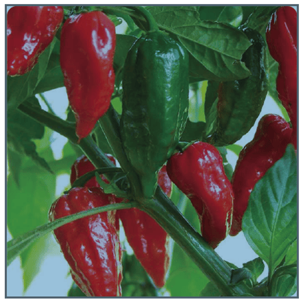 Also known as Ghost Chile. The Guinness Book of World Records hottest pepper in the world from 2007 through 2010, Bhut Jolokia measures over one million units on the Scoville scale! More than a novelty, these orange-red peppers which grow up to 2-1/2 to 3-1/2" long at maturity, can be used to spice up cuisine, but should be eaten with extreme caution and kept away from eyes. Scoville Rating: 855,000 to 1,000,000
